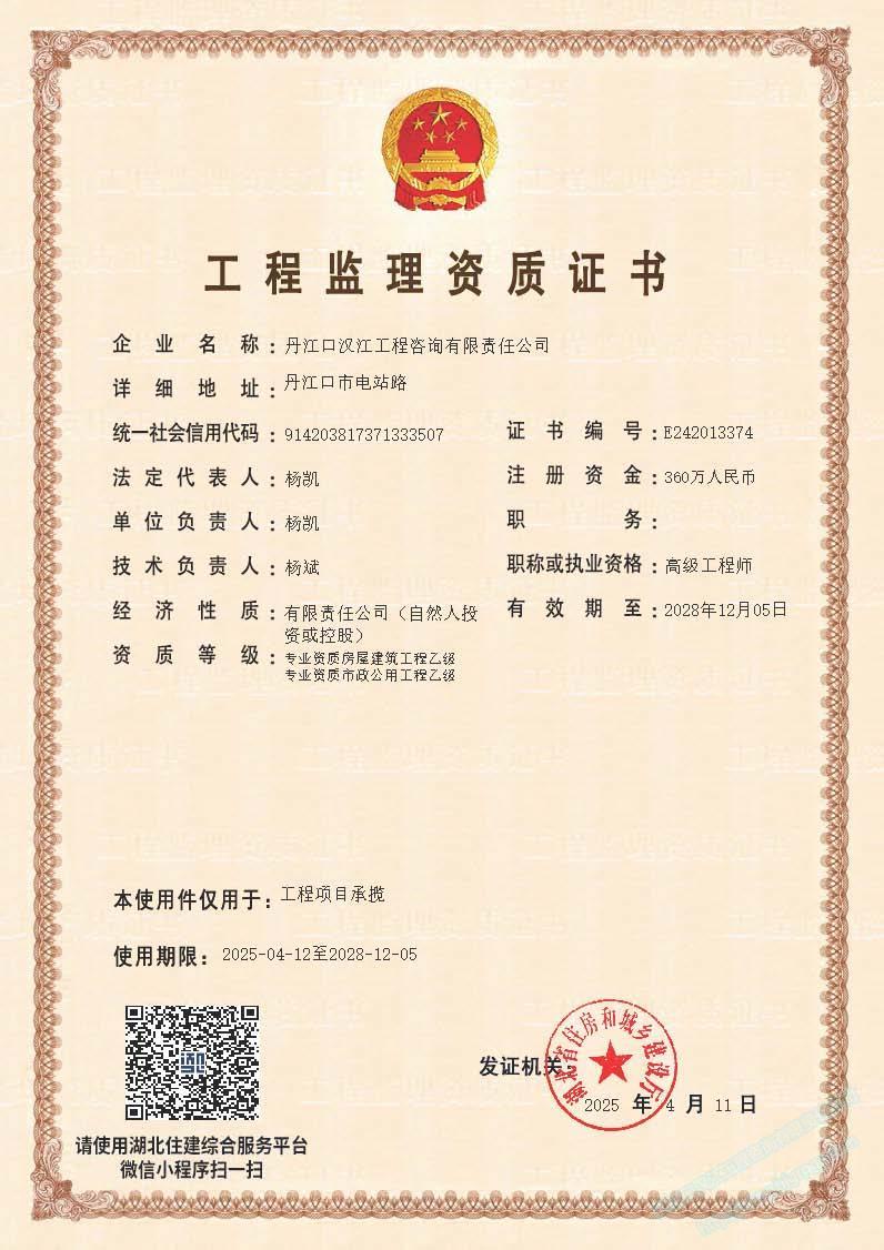 (原漢江綜合開發公司水利水電監理中心)成立于 1989年3月,1993年6月經水利部審批成為首批注冊監理單位 (隸屬于長江水利委員會), 注冊資本 360萬元 。公司位于湖北省十堰市丹江口市電站路。公司目前擁有水利部頒發的 水利工程施工監理甲級 、 水土保持工程施工監理 乙 級 資質 ;住建部頒發的 房屋建筑 、 市政公用工程監理 乙 級資質 。 可獨立承擔 各類水利水電工程 、 一般工業與民用建筑工程監理 , 土地整治 , 招標代理 、 技術咨詢 等業務。公司實行董事會領導下的總經理負責制,下設辦公室、經營部、財務部、工程技術部等職能部門。……